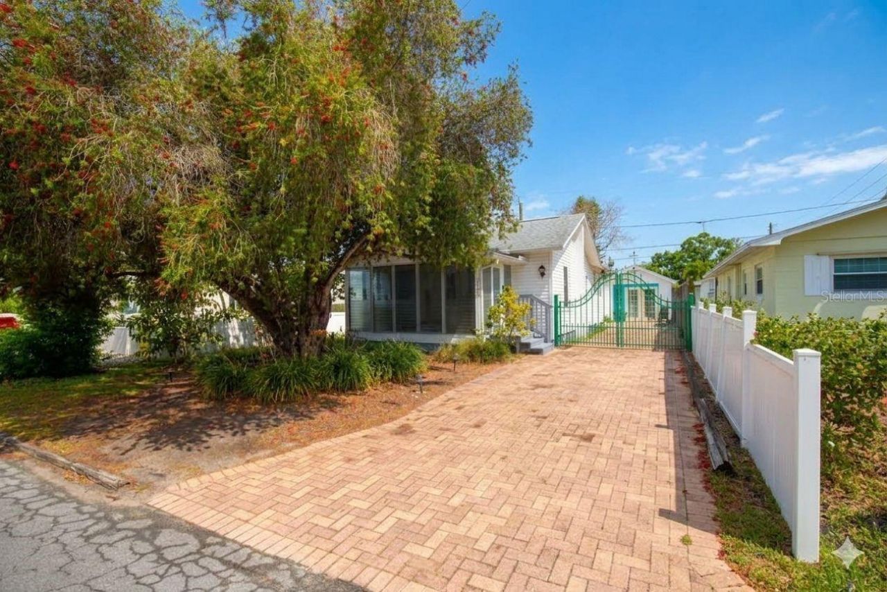 Welcome to the Boho Bungalow, a charming retreat in the vibrant downtown area of Gulfport-just three blocks from Beach Blvd, where you'll discover eclectic shops, art galleries, lively restaurants, bars, and the popular weekly Tuesday Fresh Market. Enjoy unbeatable proximity to the Gulfport Pier, beach, parks, playgrounds, recreation center and library. With year-round events and activities plus quick access to downtown St. Petersburg and the Gulf beaches, this location truly offers the best of Florida living. Step inside this elevated vintage 2-bedroom, 1-bath home and be greeted by a spacious enclosed front porch-perfect for morning coffee or evening wine. The bright living room features beautiful hardwood floors and flows seamlessly into a dining area and galley kitchen. Both bedrooms comfortably fit queen-size beds with the larger bedroom offering a walk-in closet for added convenience. Out back, a detached in-law suite/studio with a bathroom and separate laundry room (with full-size washer and dryer) provide endless possibilities-ideal for guest accommodations, a home office or an art studio. The fully fenced yard backs up to an alley and includes a storage shed, along with ample parking via a long brick driveway.Key Updates & Features: Newer roof, A/C and water heater. Termite treatment with transferable warrantyElevated home with large crawl space, moisture barrier, sump pump, and reinforced structural supportsLocated in AE flood zone, but according to Seller this home did not flood.Currently rented at $3,600/month making this a fantastic investment opportunity, vacation home, or snowbird escape. Furnishings and d?cor are negotiable. Don't miss your chance to own this unique, vintage Gulfport gem-schedule your private showing today!
