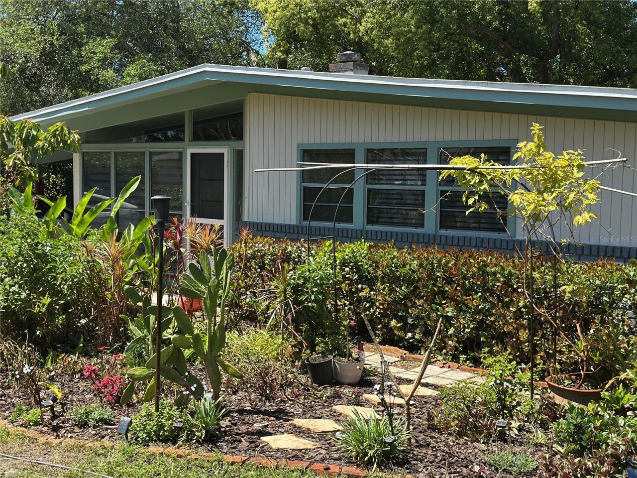 Welcome to your own private tropical sanctuary, an extraordinary 3 bedroom, 1 bath mid century modern retreat tucked away on an exceptionally quiet street in desirable St Petersburg. This one of a kind property radiates tranquility, privacy, and effortless Florida living at its finest.From the moment you arrive, you are enveloped in a lush, living landscape designed to feel like a secluded oasis. The entire property is thoughtfully framed with mature hedges and resilient Gumbo Limbo trees, a prized species native to Key West and South Florida, celebrated for its flexibility and natural hurricane resistance. These, along with a curated collection of exotic and native plants, create a natural privacy wall that transforms both the courtyard and backyard into a serene, resort style escape.The grounds are not only stunning, they are smart. A private irrigation well system ensures your landscaping remains vibrant year round while significantly reducing water costs. Combined with a hands free irrigation setup, the property offers low maintenance, high impact beauty, allowing you to enjoy the lush surroundings without the upkeep.This is truly a nature lover's dream, as the home seamlessly blends indoor and outdoor living, bringing the beauty of nature inside and creating a peaceful, immersive environment throughout the entire property.Inside, the home continues to impress with fresh interior and exterior paint, a newer roof, and timeless mid century character. The layout is both functional and inviting, featuring thoughtful upgrades such as an InSinkErator garbage disposal, ample storage throughout, and a natural flow that enhances the connection between interior spaces and the surrounding greenery.Step outside and you will find even more versatility with your own standalone storage shed, ideal for tools, hobbies, or additional organization.This home also offers peace of mind as it sustained no damage or flooding during the most recent hurricanes and is located in Flood Zone X, helping you save substantially on insurance costs.Location is everything, and this home delivers. You are just 10 to 15 minutes to award winning Gulf beaches, minutes from the vibrant energy of downtown St Petersburg, close to the charm and waterfront dining of Gulfport, and conveniently positioned for an easy commute to Tampa and surrounding areas.Whether you are relaxing in your private garden oasis, entertaining in the courtyard, or simply enjoying the quiet surroundings, this property offers a rare blend of natural beauty, privacy, and modern convenience.Buyer and their agent to verify and conduct their own due diligence.This is more than a home, it is a lifestyle, a true private paradise designed for those who appreciate nature, serenity, and effortless living.