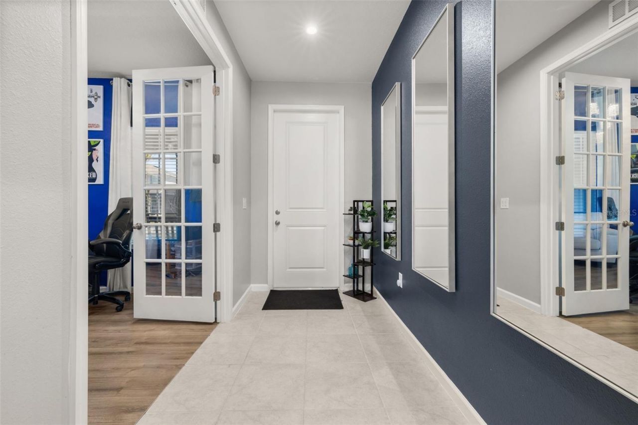 Welcome to this beautifully upgraded custom 2022-built two-story home featuring 5 bedrooms, 3 bathrooms, and plenty of space to live, relax, and entertain in one of Davenport's newest communities! Designed with both comfort and functionality in mind, this spacious home offers a bright open-concept layout filled with natural light thanks to the many windows throughout.The heart of the home is the stunning chefs kitchen, complete with a massive quartz island, double ovens, stylish backsplash, tall solid wood cabinets, expansive counter space, and a large walk-in pantry for plenty of storage. The kitchen opens right into the spacious living area, where a gorgeous stone accent wall with an electric fireplace creates the perfect focal point for gathering with family and friends.Just off the main living space, elegant French doors lead to a private first-floor office overlooking the covered front porch and peaceful conservation views-ideal for working from home or creating a quiet retreat. The first floor also includes a separate guest bedroom and full bathroom, perfect for visitors or multigenerational living.Upstairs, you'll find a spacious loft featuring a custom shiplap accent wall, offering endless possibilities for a second living room, playroom, or media space. A convenient second-floor laundry room includes washer, dryer, and cabinetry for added functionality. The oversized primary suite is a true retreat, complete with tray ceilings, another beautiful shiplap accent wall, a large walk-in closet, plus an additional walk-in closet through the primary bathroom. The ensuite bath features matching quartz double vanities with a built-in makeup station, linen closet, large walk-in shower, and private water closet. Three additional bedrooms and another full bathroom complete the second floor.While the inside of the home is absolutely beautiful and full of upgrades, the extended covered and enclosed lanai is what truly makes this property stand out. Featuring a custom ivy green accent wall, full dining area, and plenty of room for lounging, it's the perfect spot to enjoy evenings by the fire with friends or unwind in the shade during warm Florida afternoons.Located just minutes from I-4, Posner Park, shopping, dining, and entertainment-and less than 30 minutes from Orlando's world-famous theme parks-this home also offers access to fantastic community amenities including a resort-style pool and playground area for residents to enjoy. This one-of-a-kind property truly has it all!